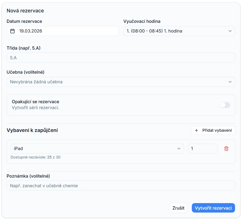 Odpovědi na to, co české školy ohledně rezervací vybavení nejvíce zajímá.